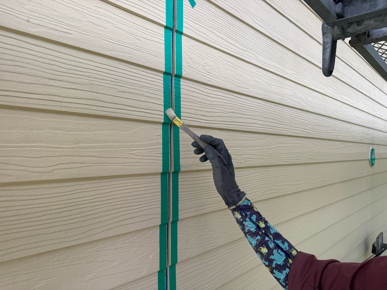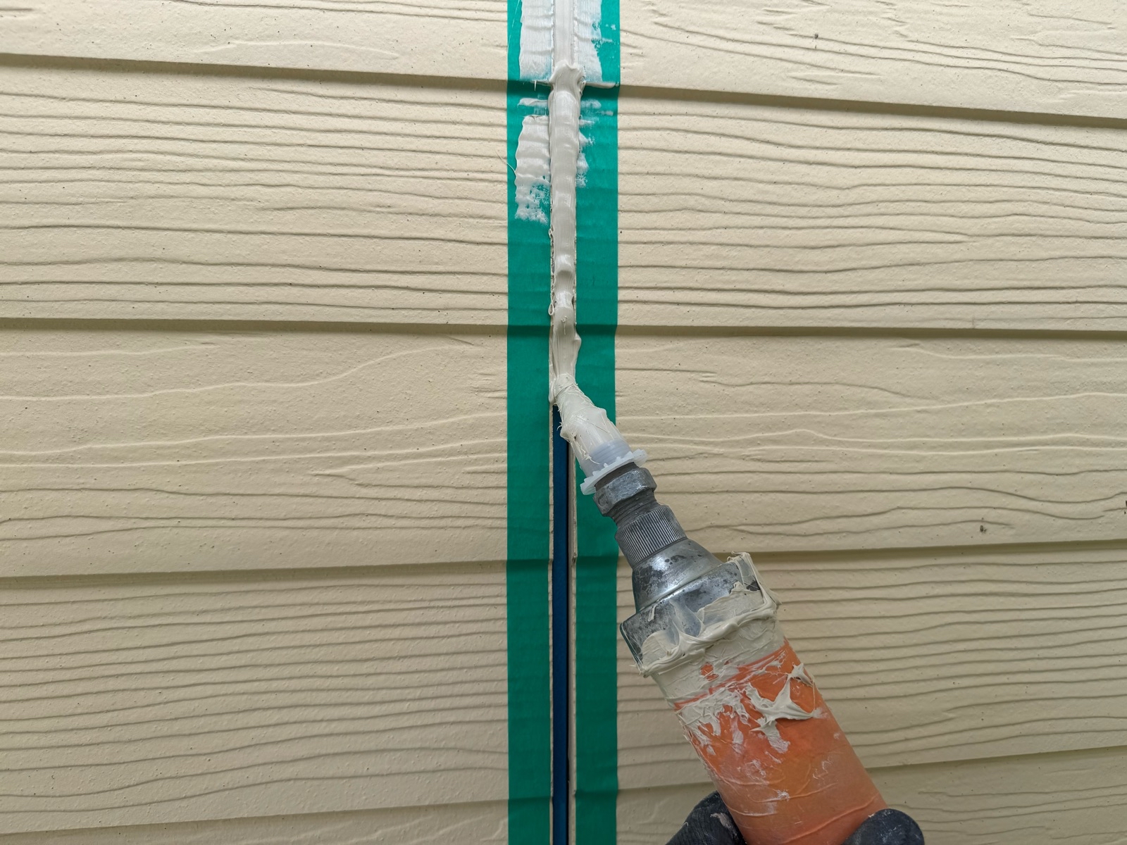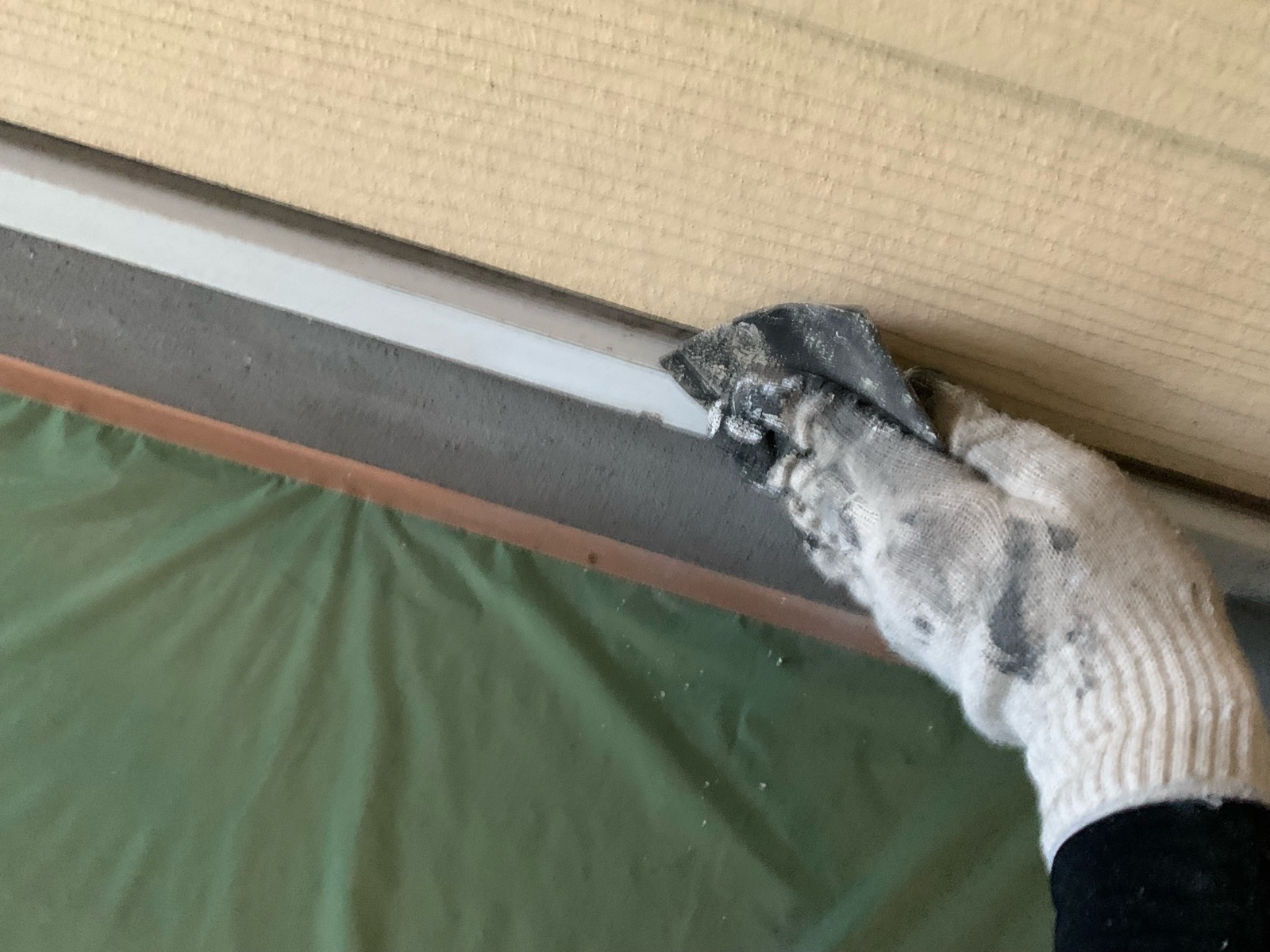 また、窓周りは打ち増しといい三角状に分厚く新しいシーリングを施工していきます。