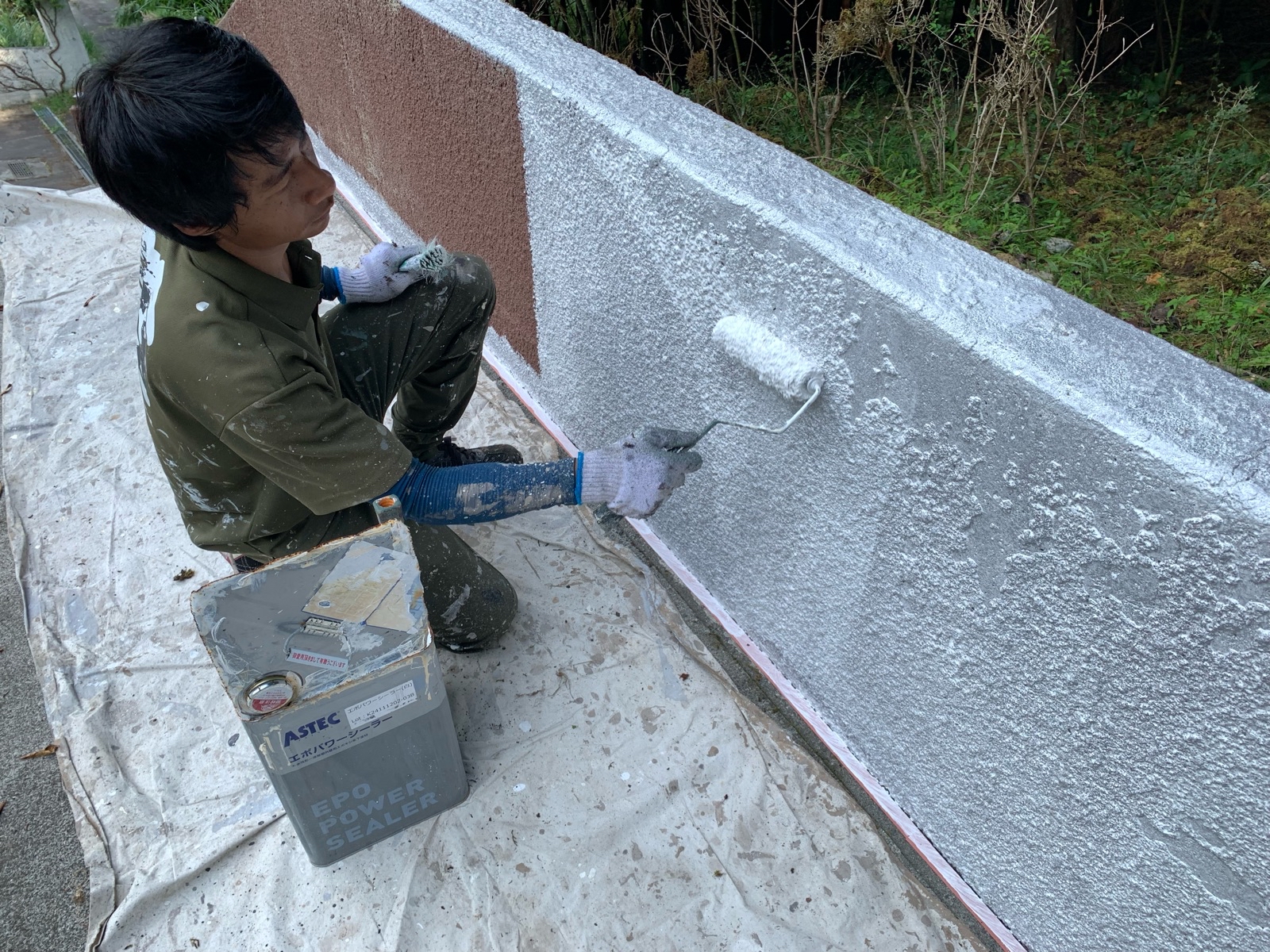 さて、これは外壁の下塗りです。