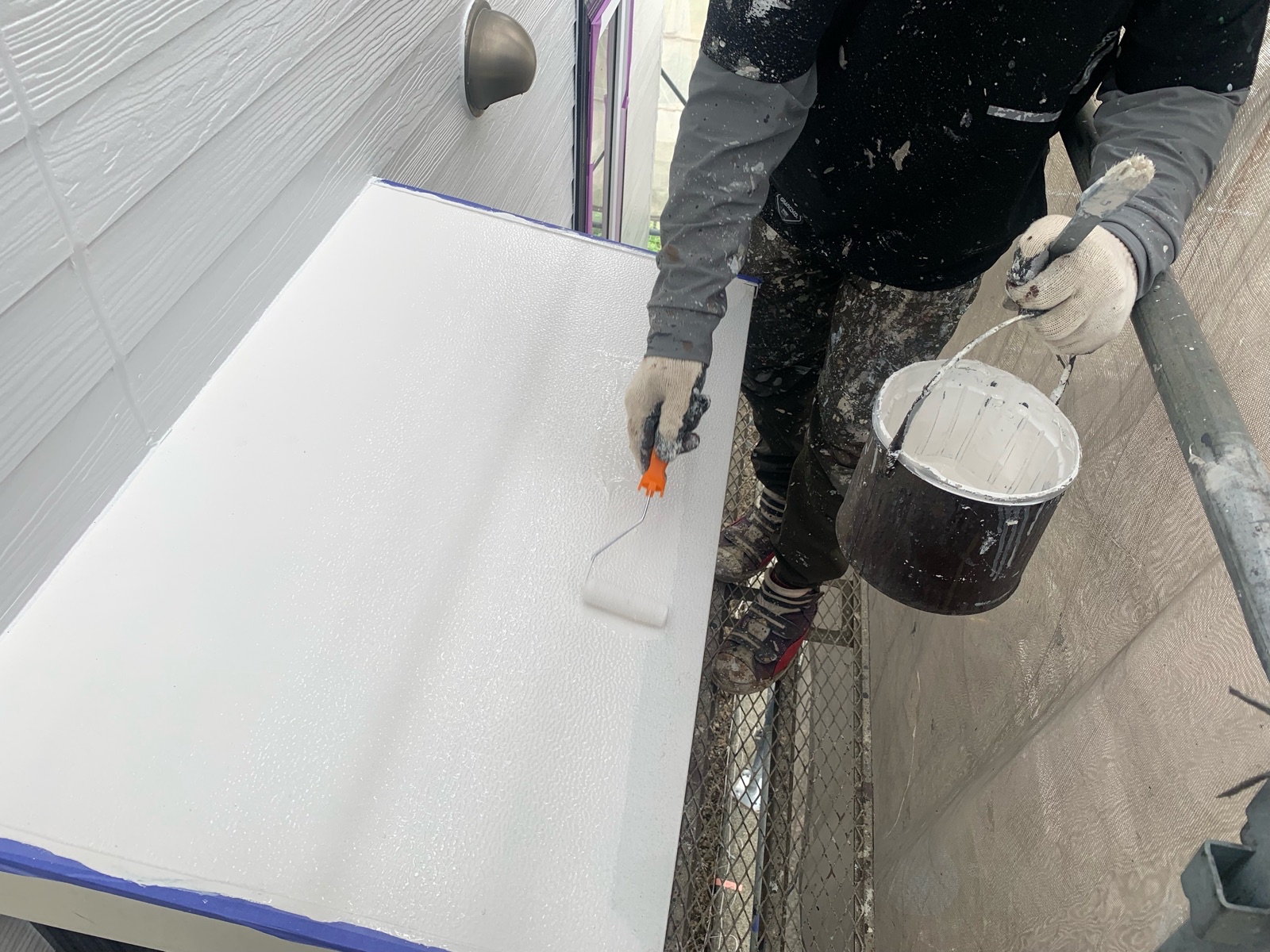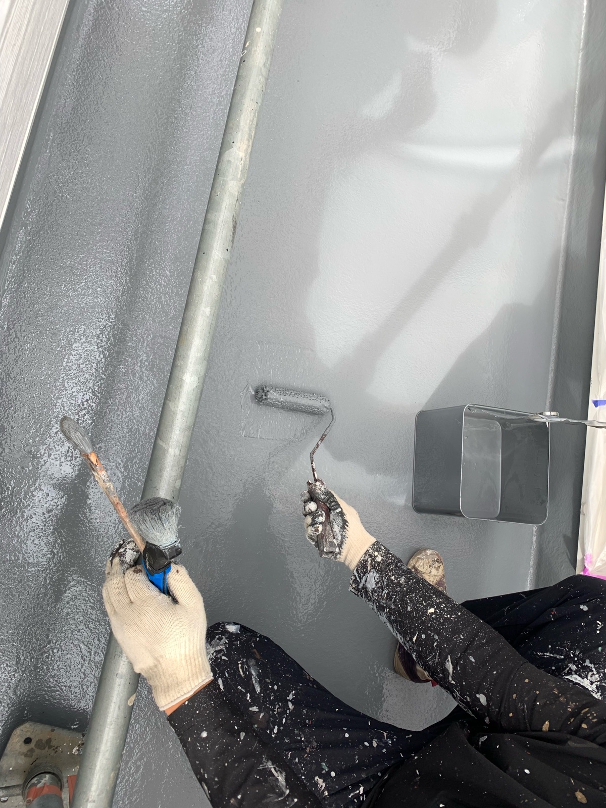 プライマー塗布後に防水層を二回塗布して完成になります。