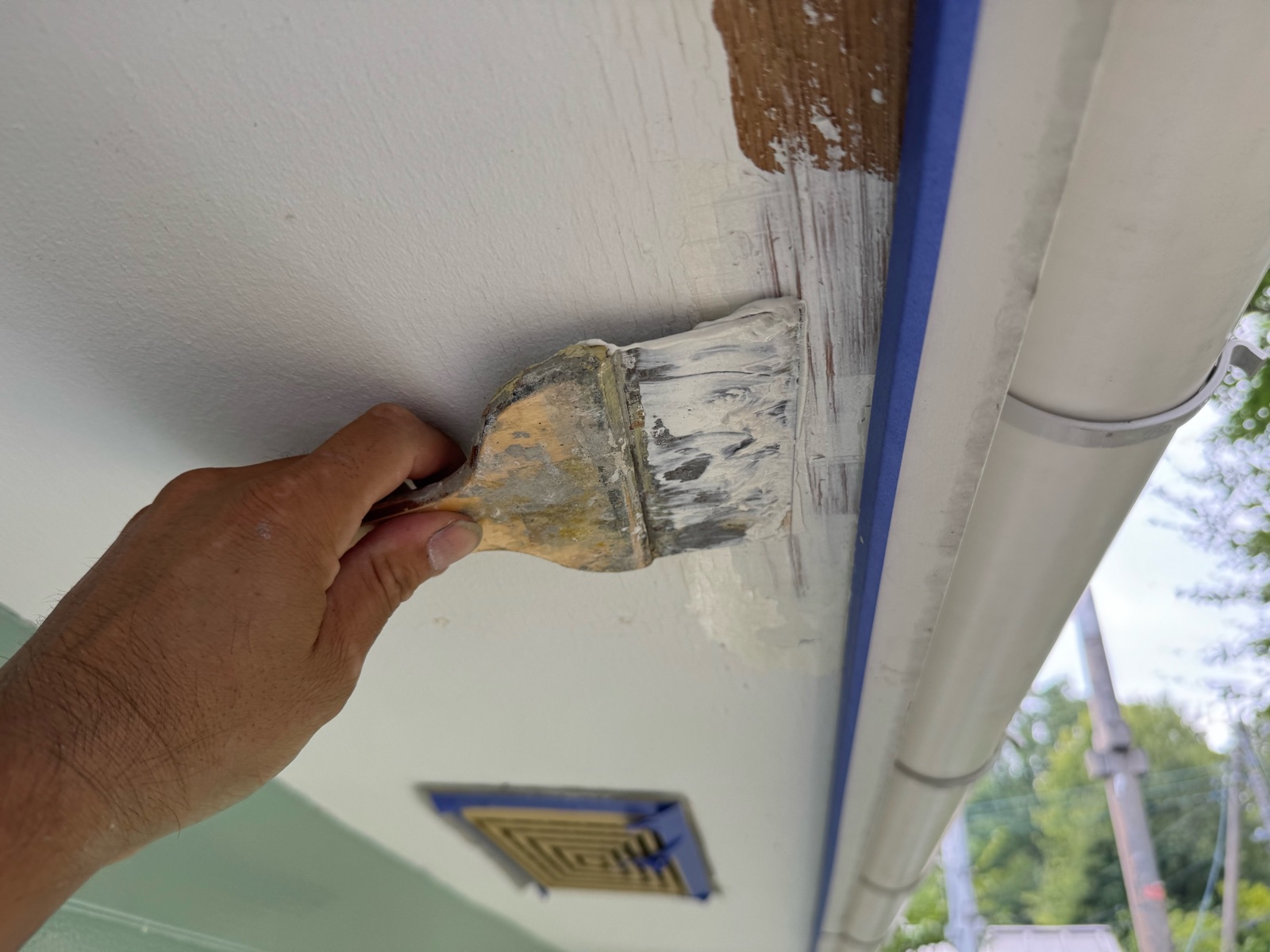 さて、この写真は屋根の一部交換です。 朽ちていたため交換してから塗装をしていきます。