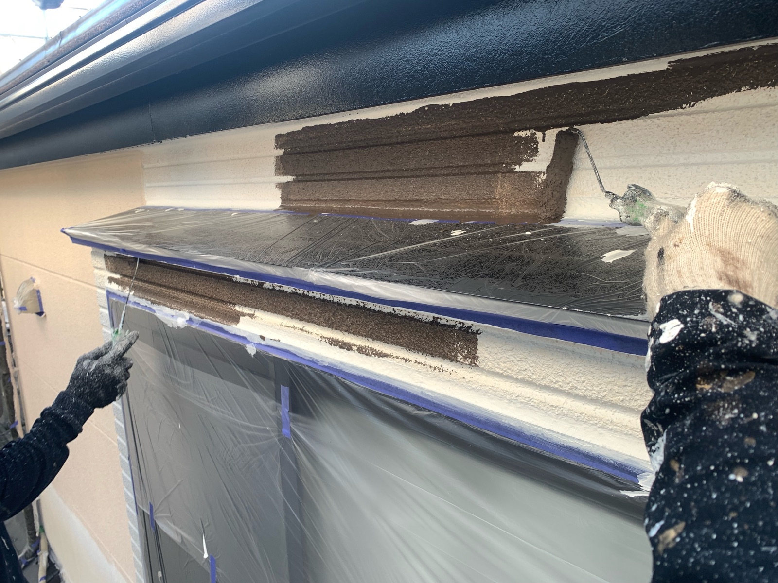 外壁がとても劣化してしていたので下塗り剤が吸ってとても使い下地を止めていきました。