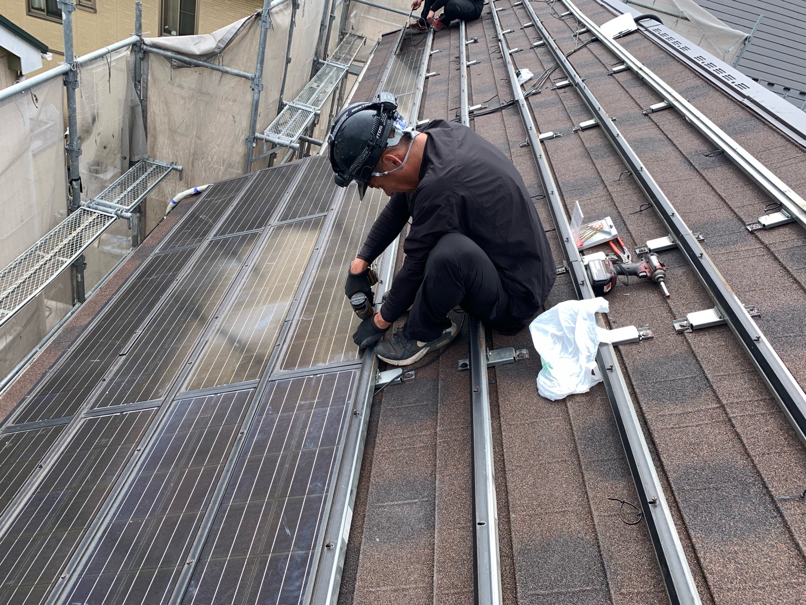 こうすることで太陽光パネルの下もしっかりとカバー工事することができます。