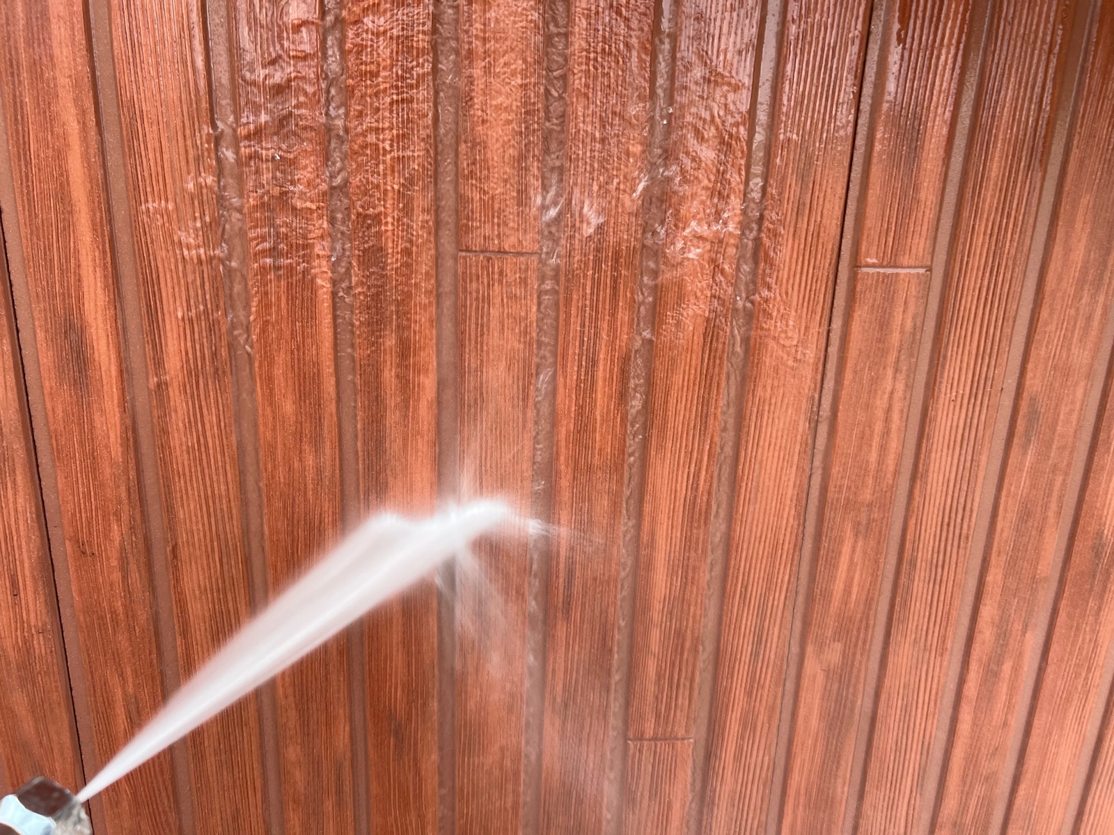さて、この写真は外壁の汚れが酷く外壁専用のクリーナーを使用しているところです。