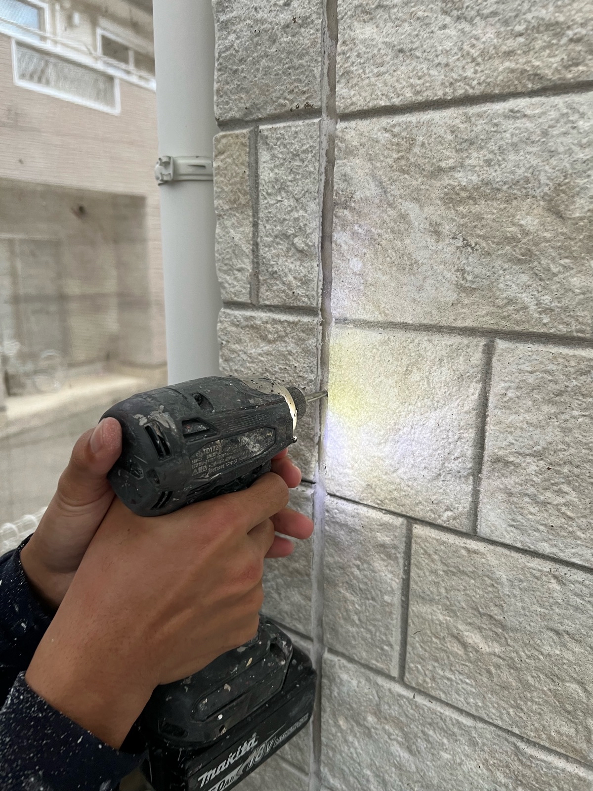 これはシーリング作業です。 プライマーを塗布してからシーリング打設して仕上げていきます。