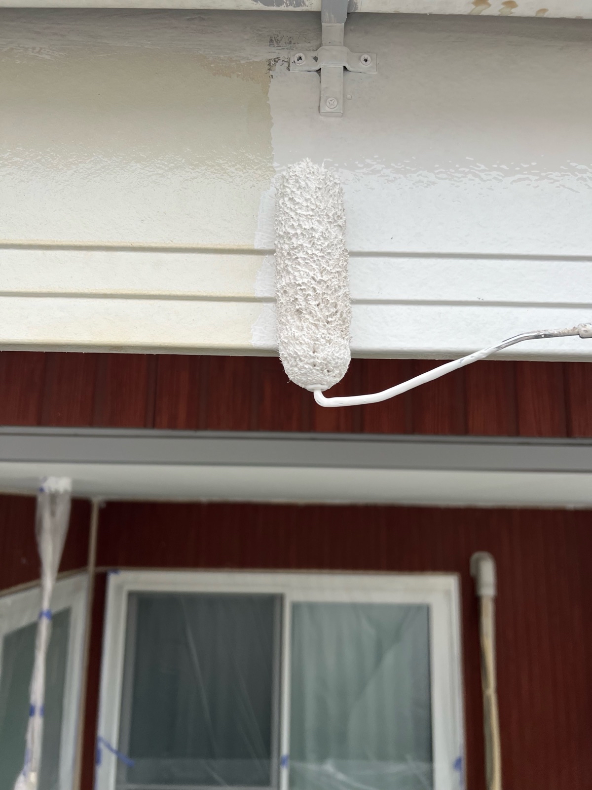破風部、幕板には増膜シーラーを塗布し鉄部には錆止め塗装をしていきます。