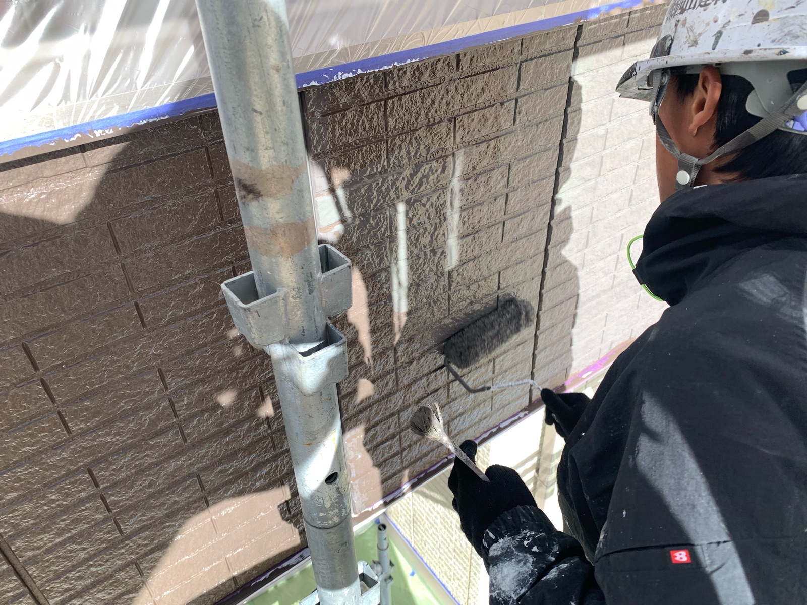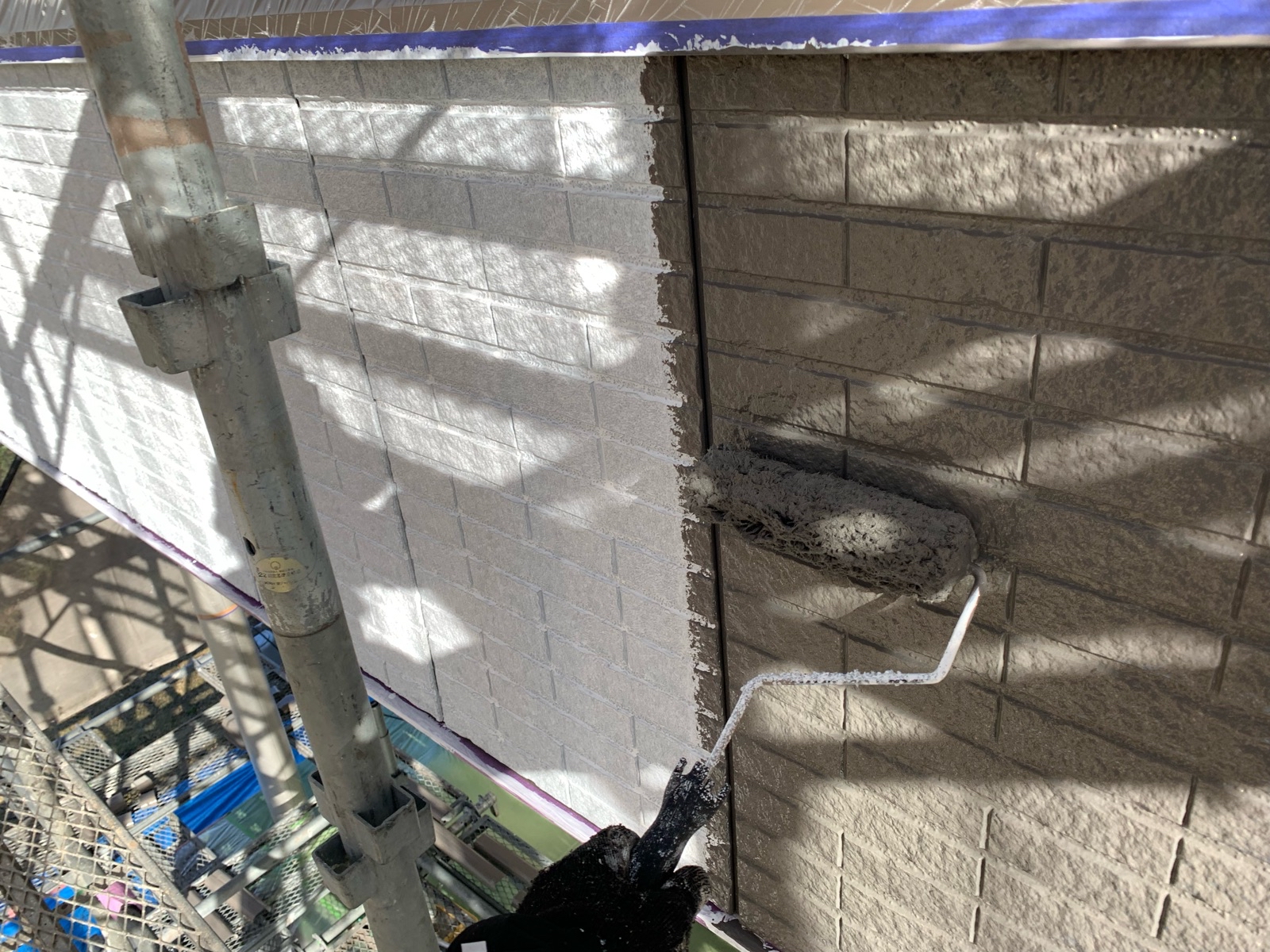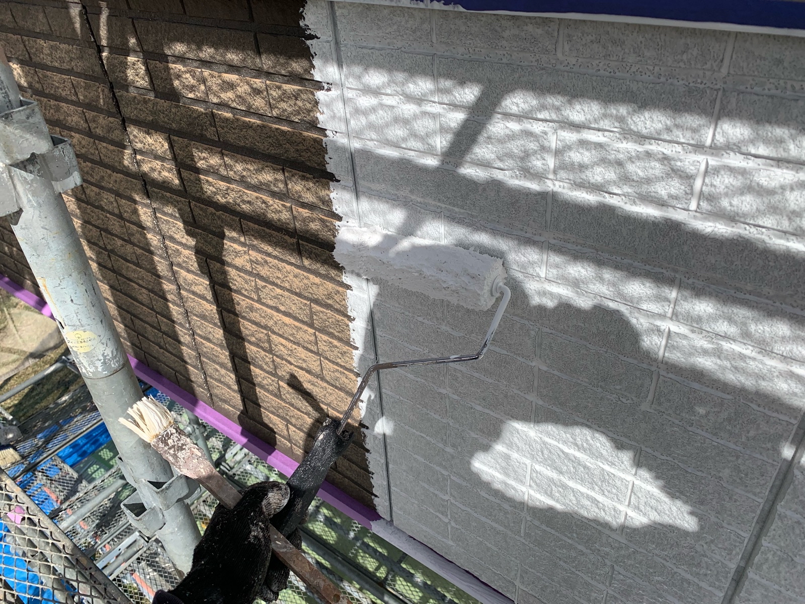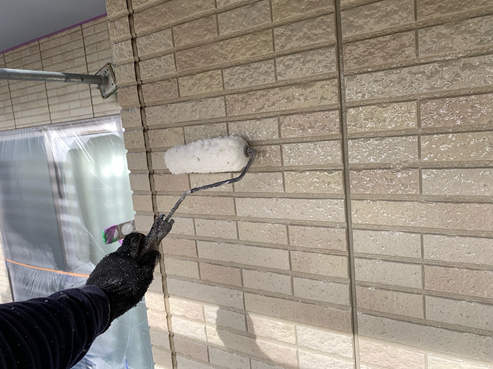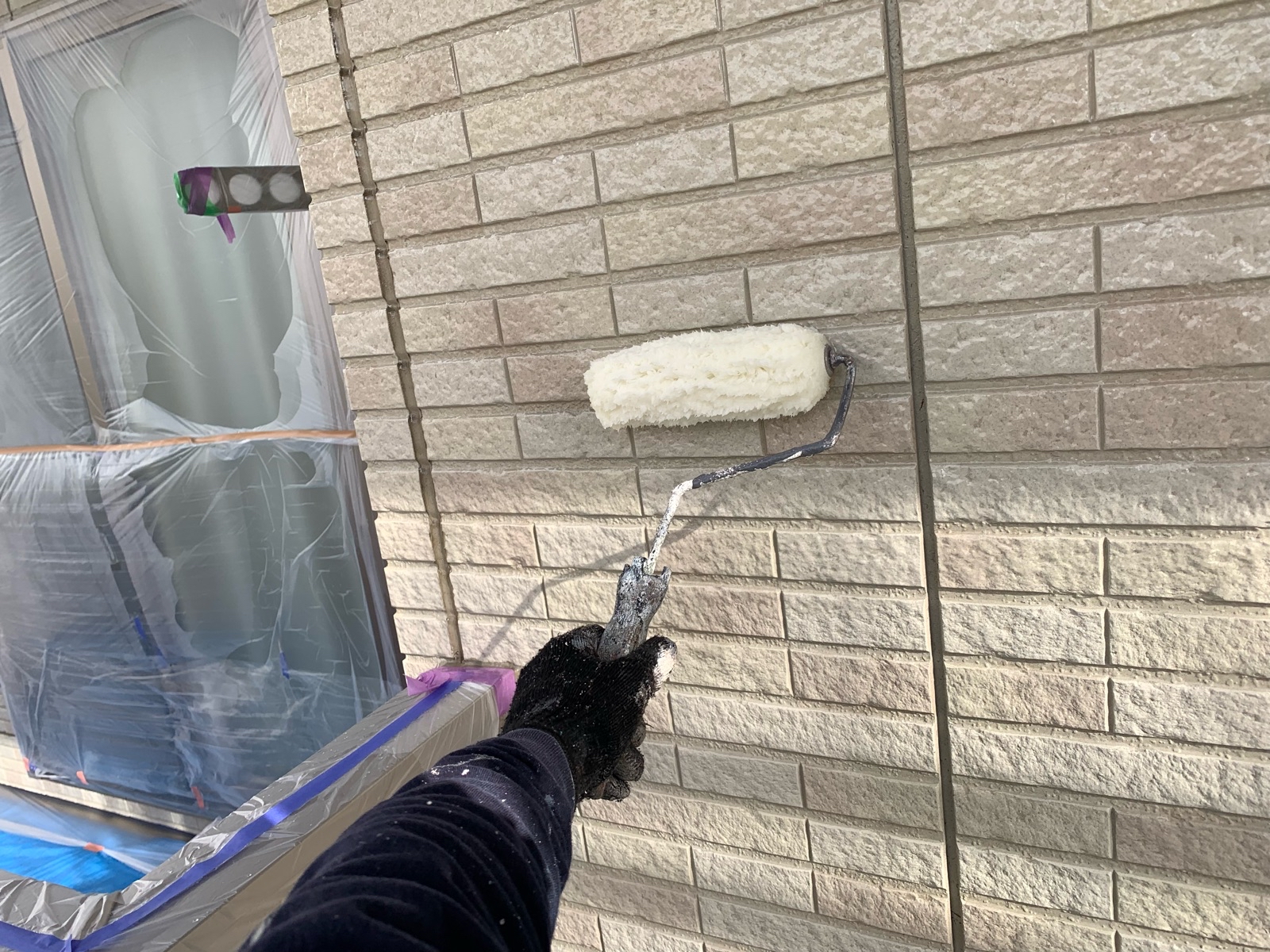 一度では吸い込みが収まらなかったため二度下塗りをしてから塗装していきます。
