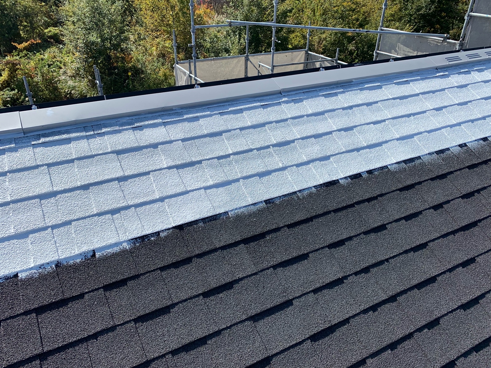 アスファルトシングルなので吸い込みが激しく塗ることが大変でしたが
