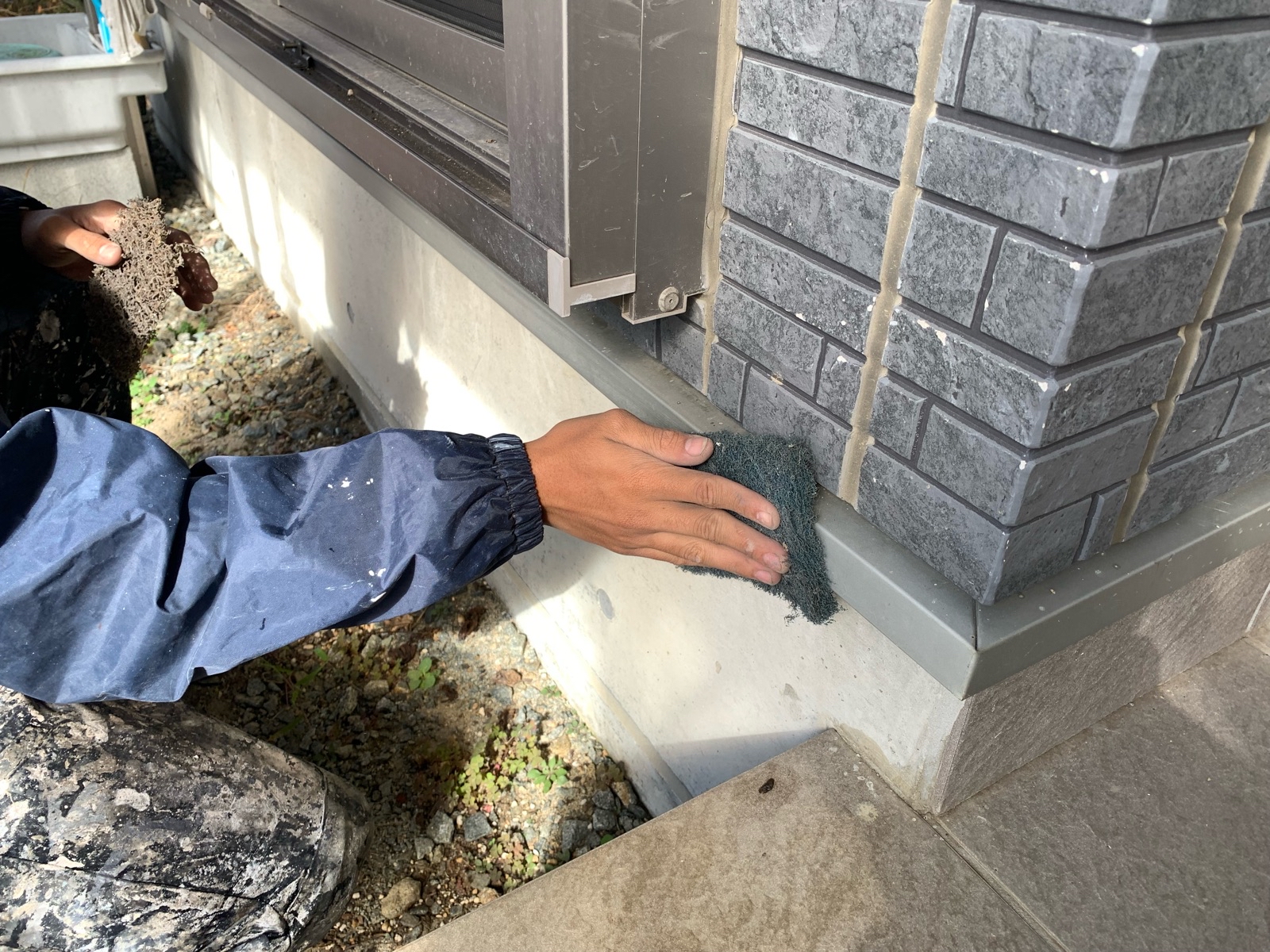 今回基礎部にもシーリングが打ち込まれていたのでそこも打ち替えていきます。