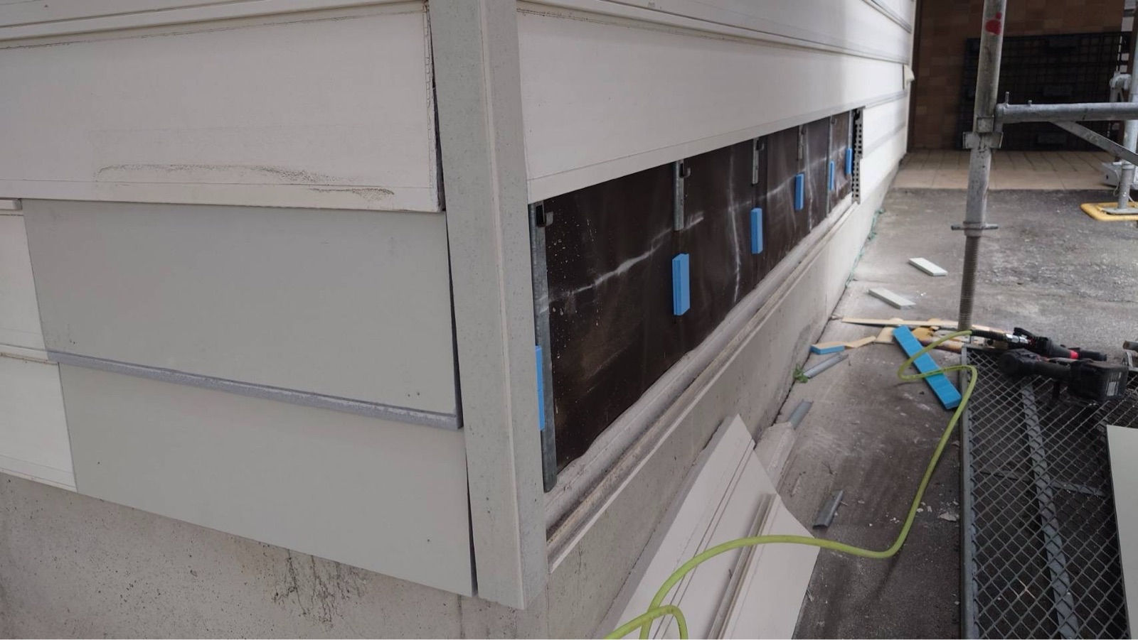 外壁がとても劣化していたため塗りでは対処できないので張替えをしていきます。