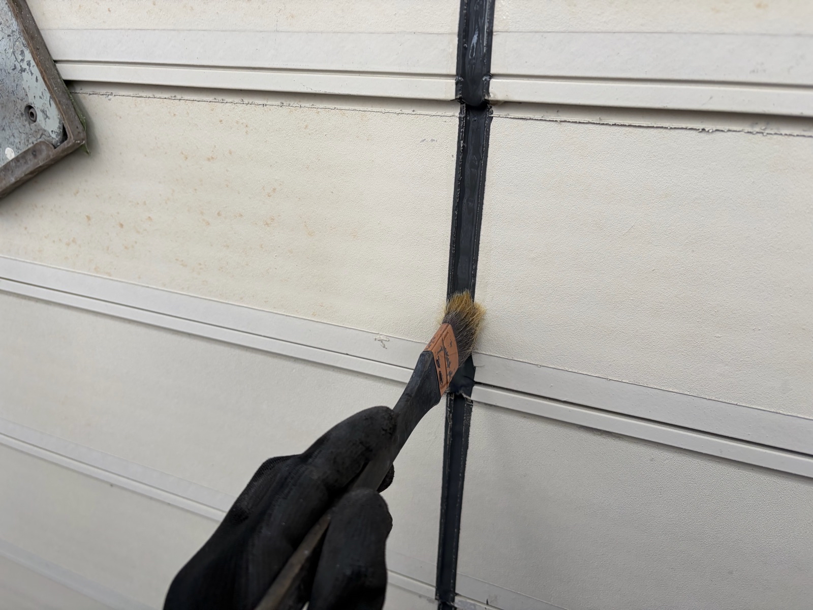 これはシーリング部割れ防止剤塗布と外壁下塗りです。
