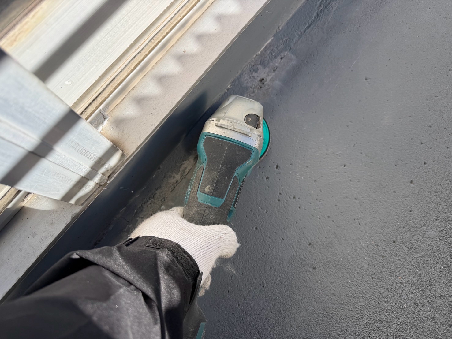 これは、手摺部シーリング作業です。