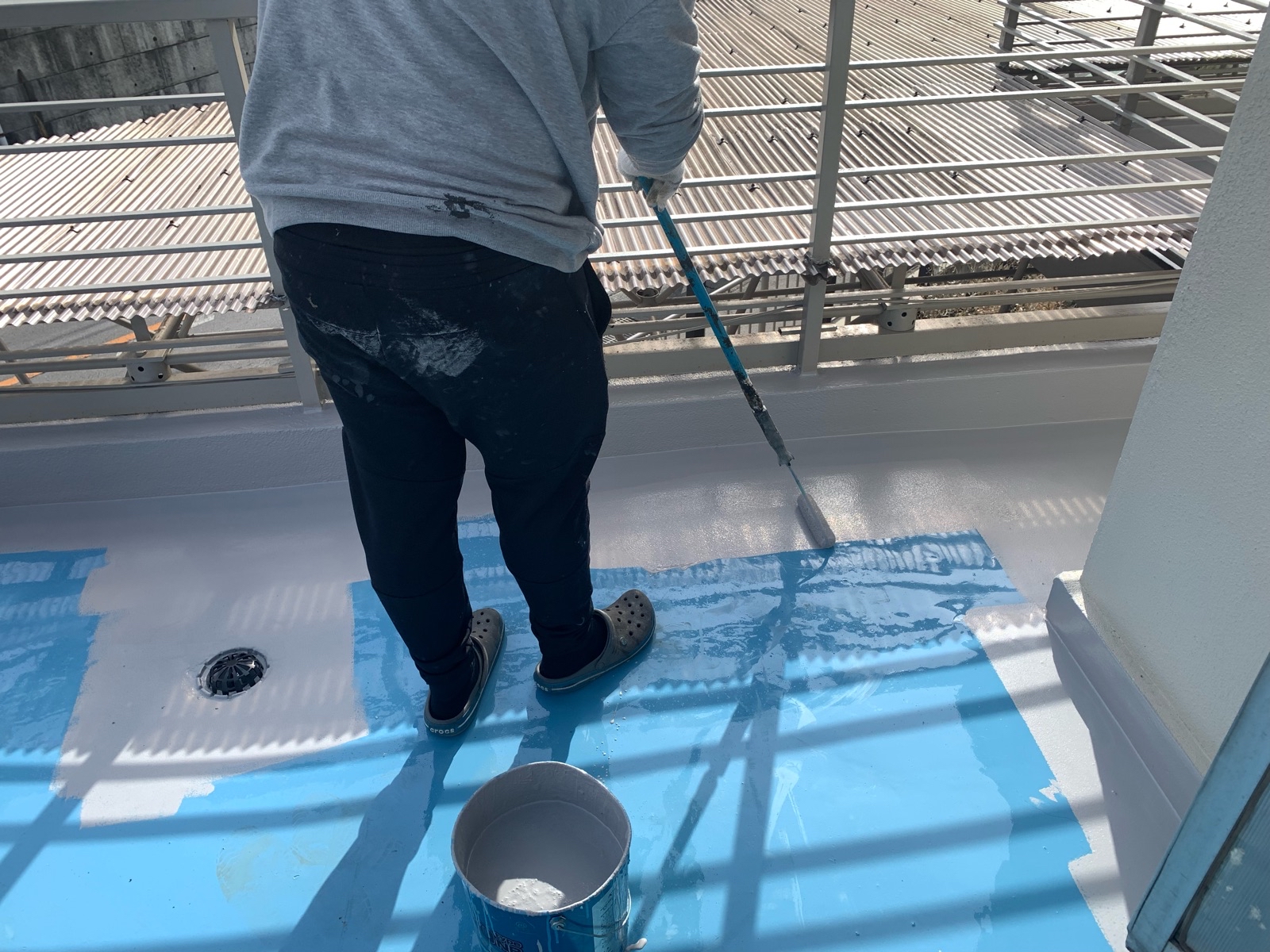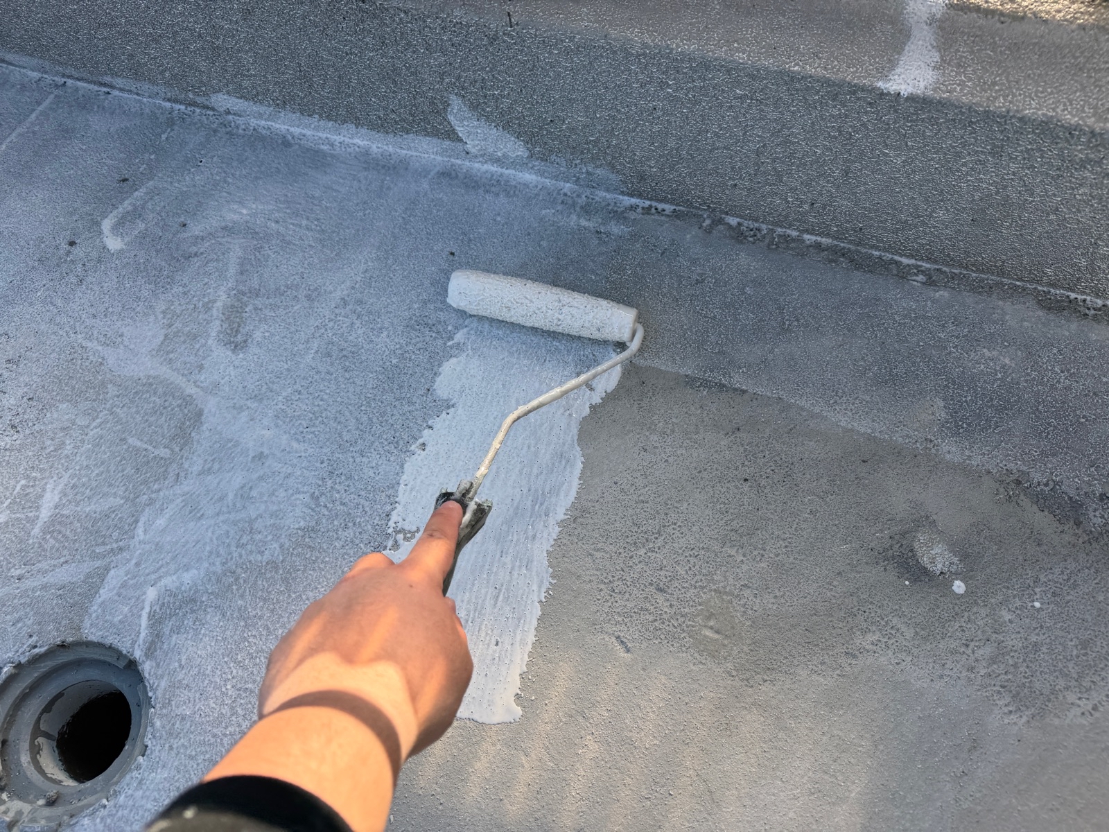 下塗り作業後に防水層を作っていきます。