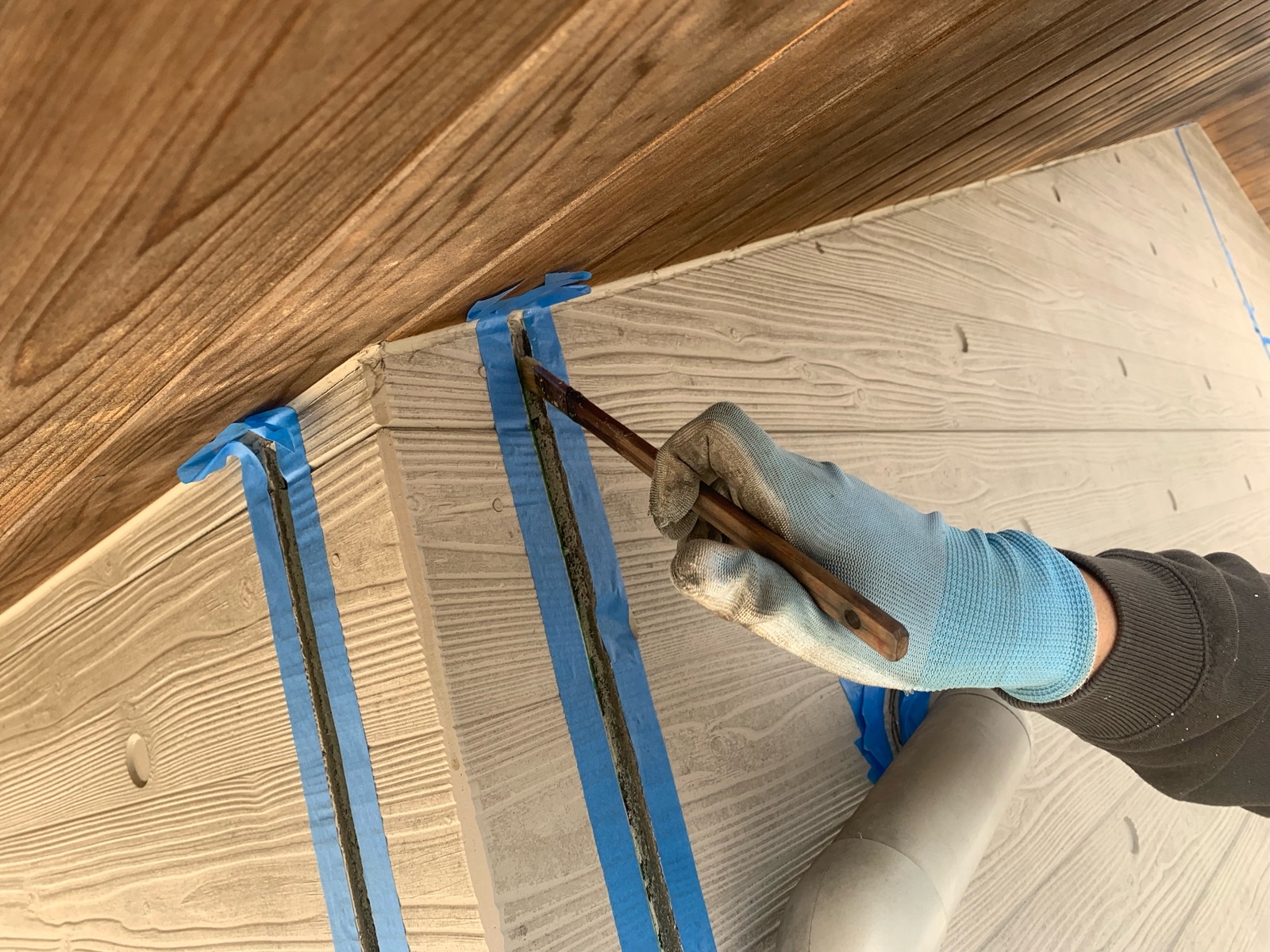 三面接着で施工すると早期に割れる原因になってしまうためしっかりと防止していきます。
